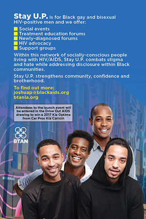 Stay U.P. is designed to attract and engage HIV-positive Black and Latino gay and bisexual men participants through social events, treatment education forums, newly diagnosed forums, and support groups. Within this network of socially conscious people living with HIV/AIDS, Stay U.P. combats stigma and hate while addressing disclosure within Black communities. Stay U.P. sets out to create a sense of community, confidence, and brotherhood.